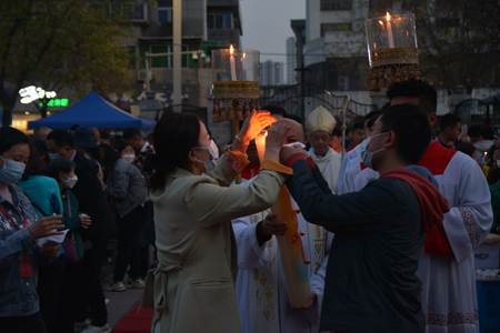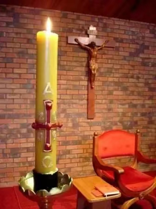 而现在教会里的守夜礼,是教众通宵祈祷,为了一起等待和迎接耶稣基督的复活的仪式。作为复活节最重要的礼仪——守夜礼,包括烛光礼、圣道礼、圣洗礼、圣祭礼。光是复活守夜礼不可或缺的部分,光是喜乐的象征,守夜礼可以说是光的庆祝。烛光礼又称为黑暗光明之礼,顾名思义,这是一场“光”的祭典。从黑暗走向光明,从死亡走向生命。